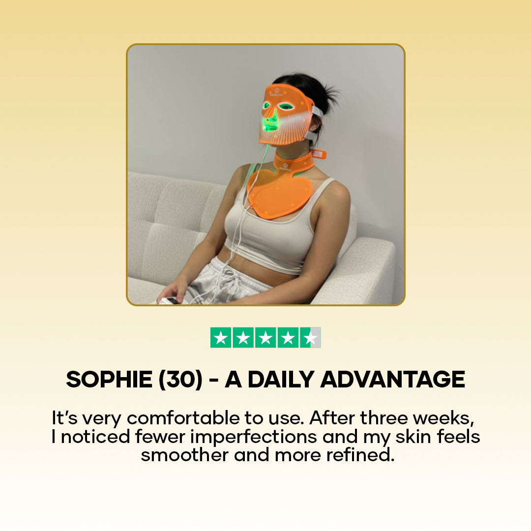 Det røde lysmaske stimulerer kollagenproduktionen og forbedrer hudstrukturen. Din hud føles fastere, glattere og synligt friskere – hver dag.
