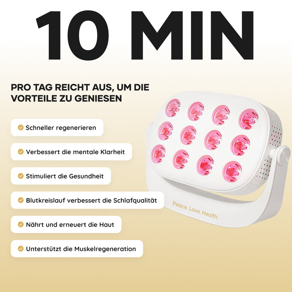 Leistungsstarke Rotlichttherapie für zu Hause, die Ihre Haut, Regeneration und Energie unterstützt.