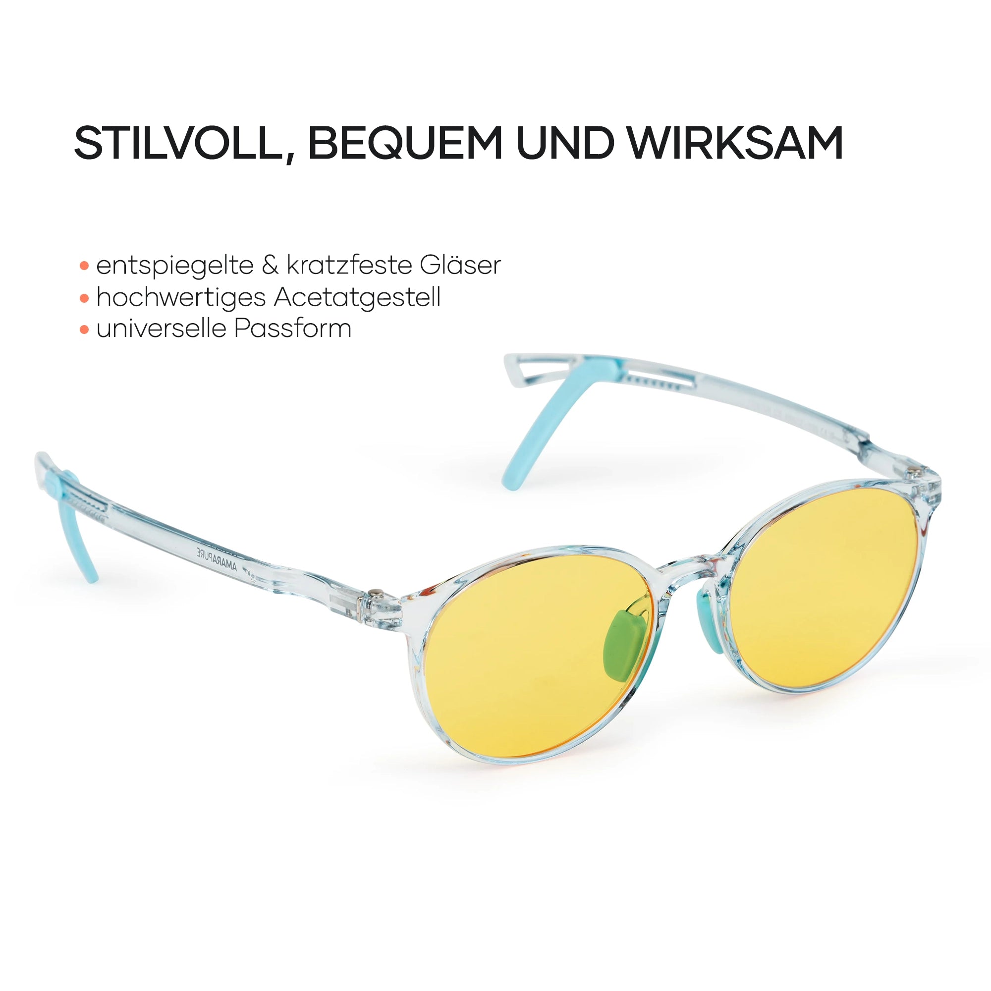 Blaulicht-Sonnenbrillen sind spezielle Brillen mit Gläsern, die blaues Licht filtern. Sie blockieren den schädlichen Anteil des blauen Lichts, das von digitalen Bildschirmen und Sonnenlicht ausgestrahlt wird.