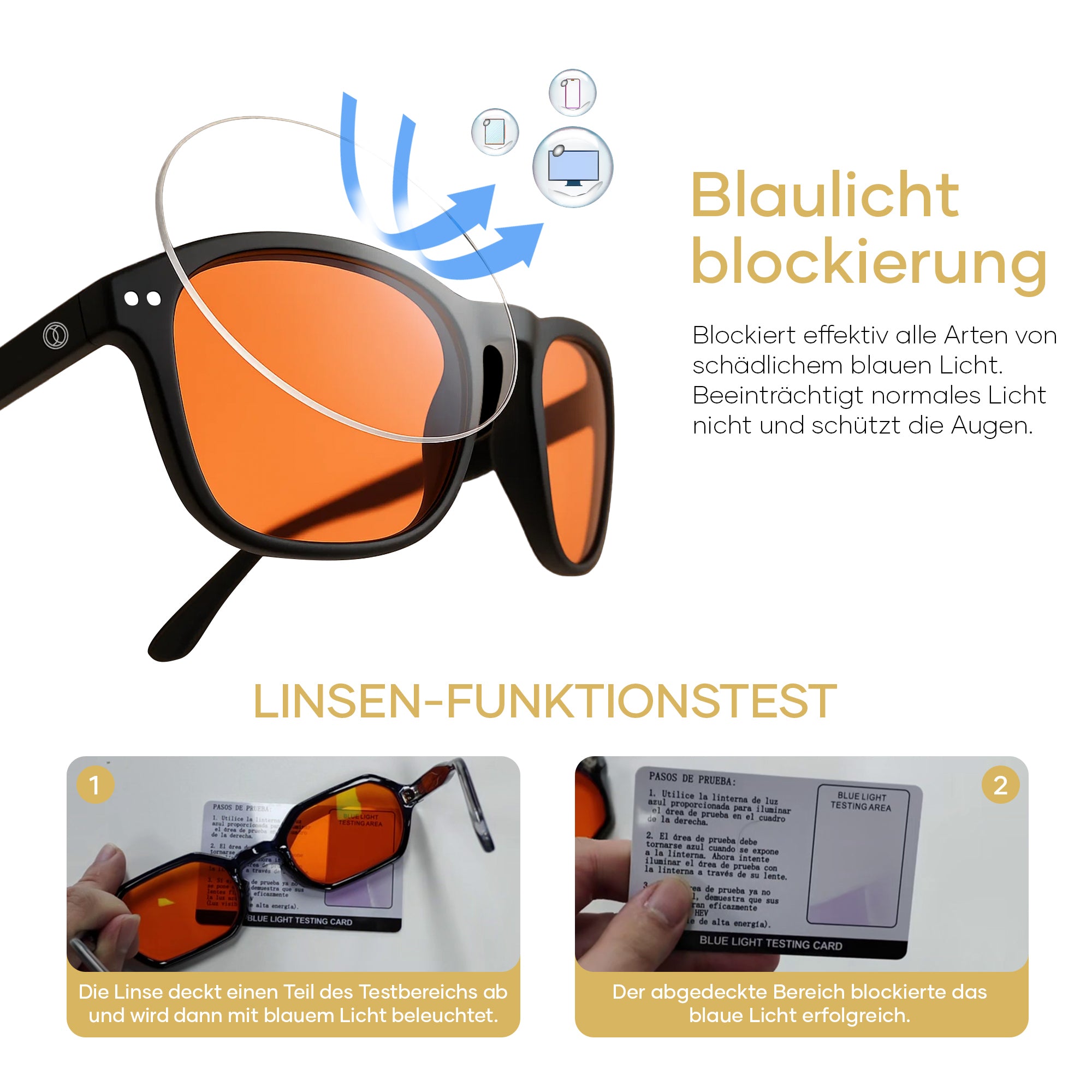 Unsere Blaulichtbrillen bieten wissenschaftlich nachgewiesener Schutz für Ihre Augen und Ihren Schlaf. Sie sind ideal für alle, die viel Zeit vor Bildschirmen verbringen, sowohl tagsüber als auch abends.