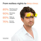 Tragen Sie Ihre Brille nachts, um eine beruhigende Wirkung auf Ihre Augen zu erzielen und schneller und tiefer zu schlafen.