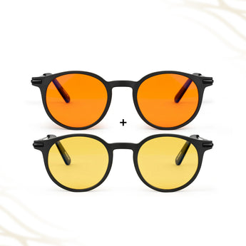 Met de AmaraPure All-Day Protection Bundle ontvang je zowel de Daygold als de Midnight blauwlichtbril. Samen bieden ze volledige bescherming voor je ogen, je focus en je slaap — precies op de momenten dat je het nodig hebt. Ideaal voor iedereen die veel tijd doorbrengt voor schermen, zowel overdag als in de avond.