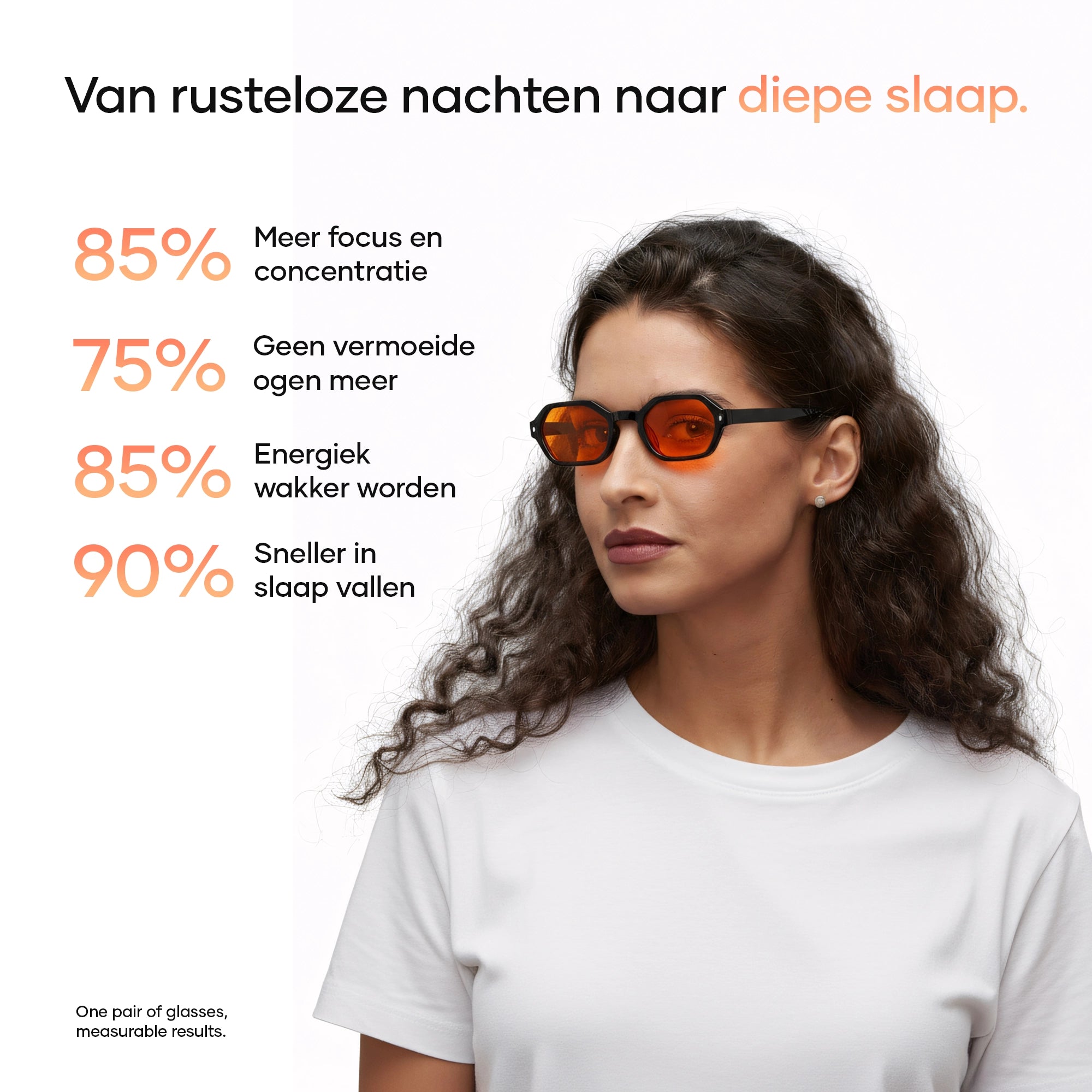 Onze blauwlichtbrillen bieden wetenschappelijk onderbouwde bescherming voor je ogen en slaap. Ideaal voor iedereen die veel tijd doorbrengt achter schermen, overdag én ‘s avonds.