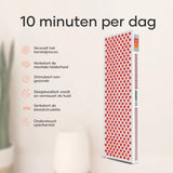 • Afstand & duur: 5–10 minuten per zone als start; bouw op naar 10–20 minuten per gebied. Houd 15–45 cm afstand volgens de handleiding. Start met 3–5 sessies per week.