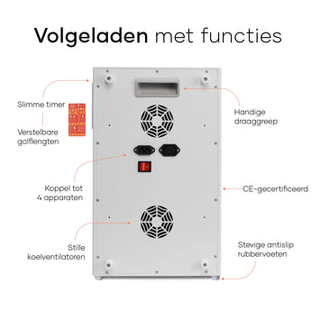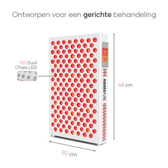 • Afstand & duur: 5–10 minuten per zone als start; bouw op naar 10–20 minuten per gebied. Houd 15–45 cm afstand volgens de handleiding. Start met 3–5 sessies per week.