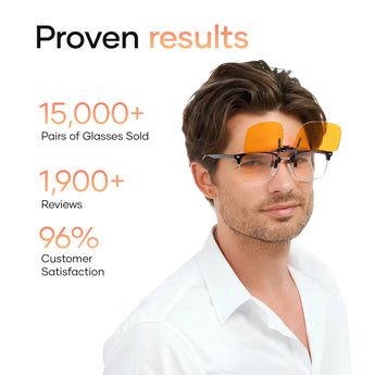 Gjør ethvert par briller om til blålysfilter med våre premium clip-on linser. Perfekt for arbeid, gaming og kvelder foran skjermen.