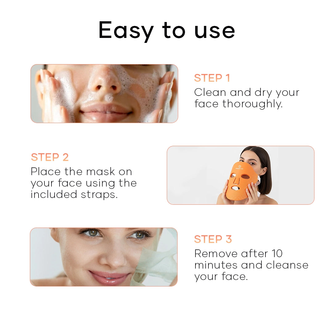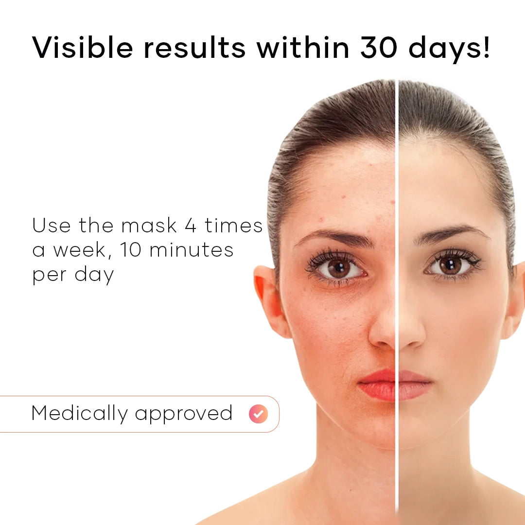 Basert på den samme teknologien som brukes i klinikker og spa over hele verden, nå tilgjengelig i en praktisk og behagelig ansiktsmaske for hjemmebruk.