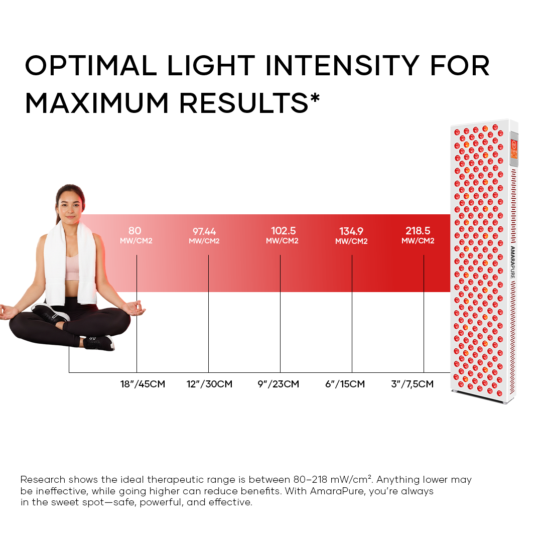 • Distance & duration: Start with 5–10 minutes per zone; build up to 10–20 minutes per area. Maintain a distance of 15–45 cm according to the manual. Begin with 3–5 sessions per week.