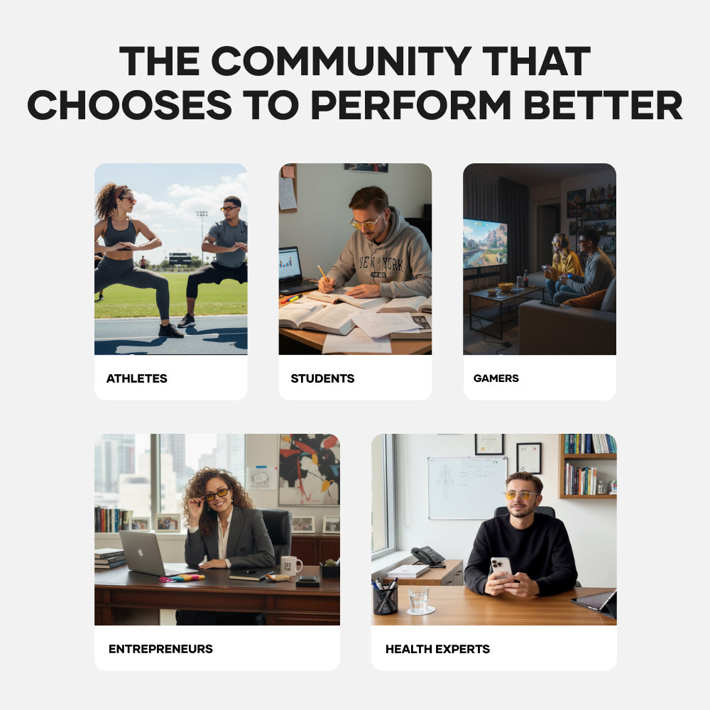 Från företagare till gamers, från idrottare till studenter – tillsammans bildar vi en gemenskap som väljer bättre prestationer, mer energi och friskare ögon. Gå med i #Amarapure-rörelsen