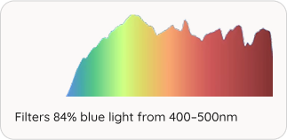 - Mindre ögontrötthet: filtrerar skadligt blått ljus och förhindrar svidande eller torra ögon.